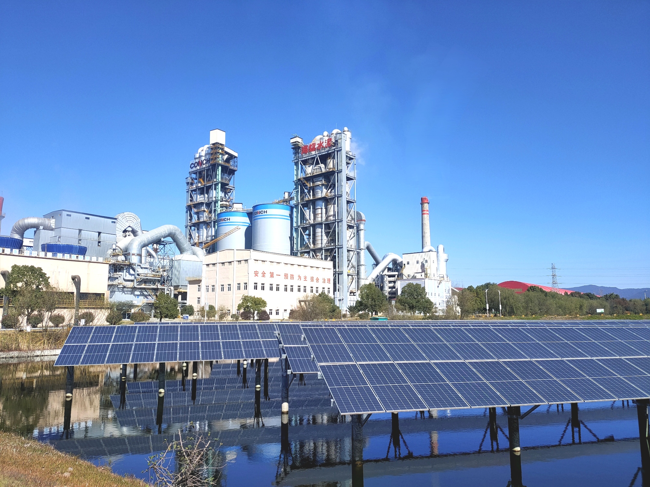 安徽宣城海螺水泥有限公司成立于2004年4月,是安徽海螺集團(tuán)公司旗下的安徽海螺水泥股份有限公司全資子公司。項(xiàng)目已建設(shè)2條日產(chǎn)5000噸新型干法熟料生產(chǎn)線和年產(chǎn)320萬噸的水泥粉磨系統(tǒng),主廠區(qū)占地1050畝。一期建設(shè)兩條日產(chǎn)5000噸熟料水泥生產(chǎn)線分別于2007年7月29日、9月9日點(diǎn)火投產(chǎn),年產(chǎn)160萬噸水泥粉磨系統(tǒng)分別于2007年8月24日、10月6日投入運(yùn)行;配套建設(shè)年吞吐量300萬噸的鐵路專用線于2008年1月23日順利通過竣工驗(yàn)收;18000kW純低溫發(fā)電系統(tǒng)于2008年3月1日并網(wǎng)發(fā)電。二期建設(shè)年產(chǎn)160萬噸水泥聯(lián)合粉磨系統(tǒng),兩臺(tái)聯(lián)合水泥磨分別于2017年3月18日、4月11日投入運(yùn)行。公司光伏項(xiàng)目一期總裝機(jī)容量15.62MW,二期總裝機(jī)量3.48MW,分別于2019年9月、2022年10月建成并網(wǎng),項(xiàng)目占地面積約414畝,采用“自發(fā)自用、余電上網(wǎng)”的發(fā)電模式。