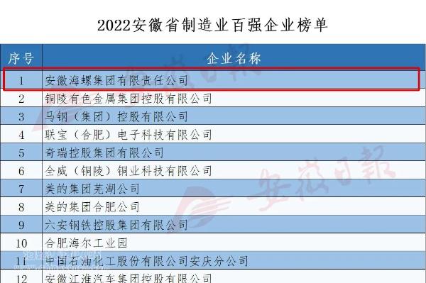 12月12日,安徽省企業(yè)聯(lián)合會(huì)、省企業(yè)家聯(lián)合會(huì)連續(xù)第18次發(fā)布“2022安徽百?gòu)?qiáng)企業(yè)”、“2022安徽制造業(yè)百?gòu)?qiáng)企業(yè)”、“2022安徽服務(wù)業(yè)百?gòu)?qiáng)企業(yè)”榜單。海螺集團(tuán)名列“2022安徽百?gòu)?qiáng)企業(yè)”、“2022安徽制造業(yè)百?gòu)?qiáng)企業(yè)”兩項(xiàng)第一。