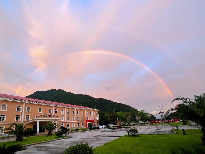 赤橙黃綠青藍紫,誰持彩練當空舞?雨后復斜陽,關山陣陣蒼……古往今來,描寫彩虹的詩詞有很多,而毛澤東的這首《菩薩蠻·大柏地》則以歡快的筆調,描繪了一幅色彩斑斕的大柏地雨后的壯麗景色,抒發(fā)了作者的革命豪情。在海螺看到美麗彩虹,您會發(fā)出怎樣的感慨呢?