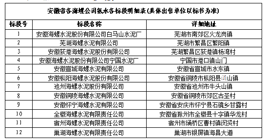 安徽荻港海螺水泥股份有限公司擬對(duì)安徽地區(qū)12家基地子公司(蕪湖海螺、荻港海螺、白馬廠、寧國廠、宣城海螺、銅陵海螺、池州海螺、樅陽海螺、懷寧海螺、宿州海螺、全椒海螺、巢湖海螺)2021-2022年度氨水進(jìn)行聯(lián)合招標(biāo)采購,為進(jìn)一步體現(xiàn)公開、公平、公正、擇優(yōu)的原則,拓寬采購渠道,保證采購質(zhì)量,現(xiàn)將招標(biāo)采購信息發(fā)布如下: