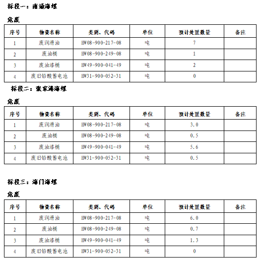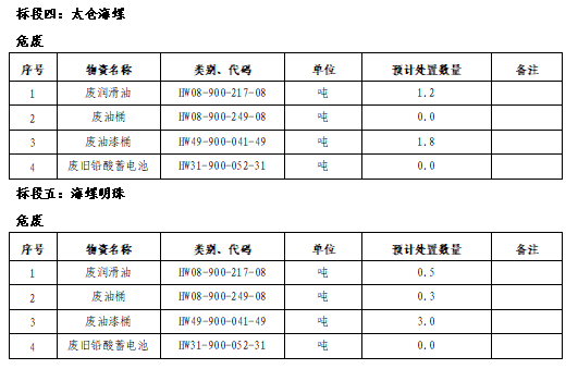 由于5月份上海區(qū)域危廢招標(biāo)數(shù)量較少,導(dǎo)致流標(biāo),考慮到區(qū)域南通、海門、太倉等5家公司危廢處置合同即將到期,為防范環(huán)?;轱L(fēng)險(xiǎn),確保廢油、廢舊油桶、廢油漆桶、廢鉛酸蓄電池等危廢材料符合相關(guān)環(huán)保處置要求,由海螺明珠牽頭組織對上海、江蘇危廢處置進(jìn)行再次公開招標(biāo),具體事項(xiàng)安排如下: