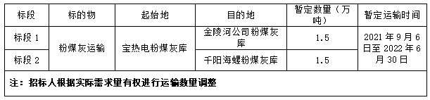 1.標(biāo)的物:大唐寶雞熱電廠粉煤灰運(yùn)輸。