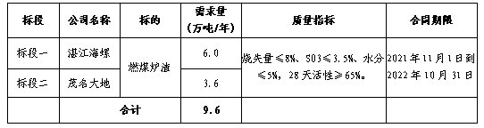 安徽海螺水泥股份有限公司廣東區(qū)域下屬的湛江海螺、茂名大地兩家公司擬聯(lián)合開展2021年-2022年燃煤爐渣公開招標(biāo)工作,為進(jìn)一步體現(xiàn)公平、公正、公開的原則,拓寬采購渠道,提高采購質(zhì)量,現(xiàn)將相關(guān)事宜公告如下: