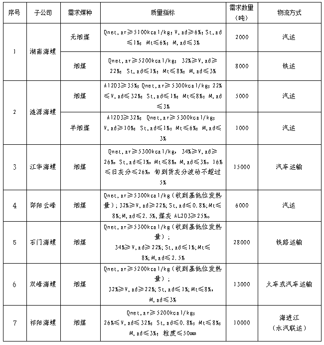 根據(jù)2022年1月21日-2022年2月20日海螺水泥湖南區(qū)域各子公司煤炭需求,現(xiàn)擬對煤炭進行公開招標,選定中標人,為體現(xiàn)公平、公正、公開的原則,拓寬采購渠道,現(xiàn)將招標相關(guān)事宜公告如下: