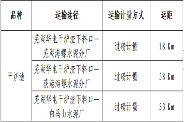 3、合同期限:粉煤灰、脫硫石膏、干爐渣合同期限為2022年5月1日至2023年4月30日(注:本次招標為預(yù)招標,若蕪湖海螺水泥有限公司未取得2022-2023年度安徽華電蕪湖發(fā)電有限公司發(fā)電副產(chǎn)品包銷權(quán),本次招標按照流標處理)。