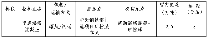 1.標(biāo)的物:中天鋼鐵海門港項(xiàng)目礦粉運(yùn)輸