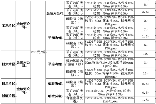 說明:其中采礦選礦廢渣為原礦資源,不允許摻配含鐵工業(yè)廢渣,對于違約情形,按照合同約定處罰。