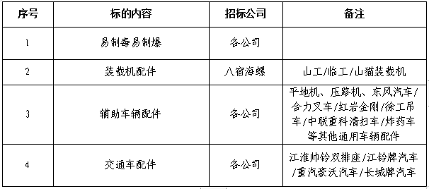 2.自采配件:裝載機(jī)配件、輔助車輛配件、交通車配件,考慮運(yùn)輸距離及價格差異,八宿海螺需單獨報價。具體分類詳見招標(biāo)公司招標(biāo)清單。