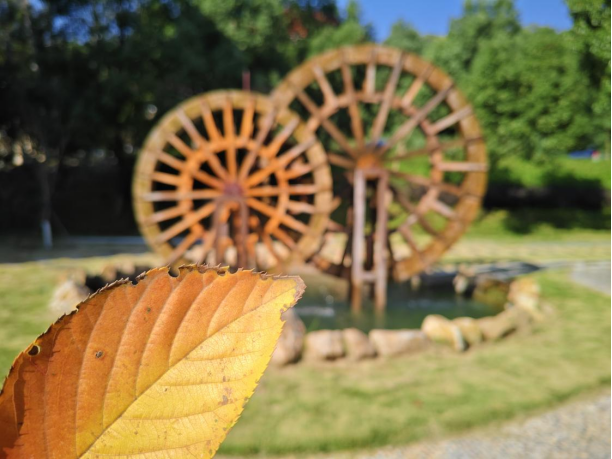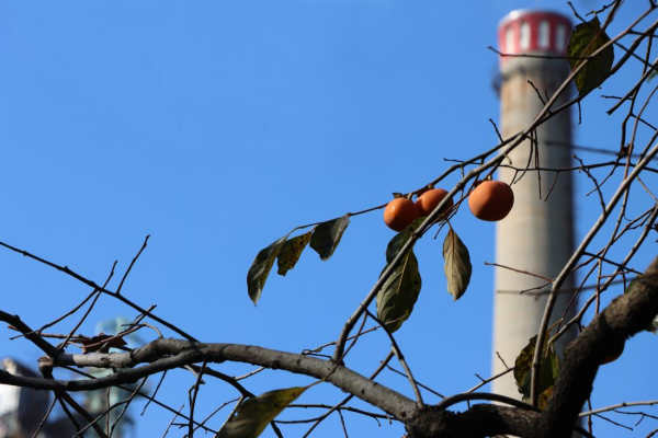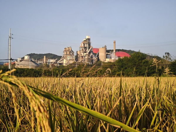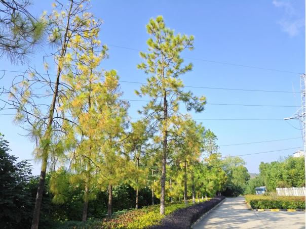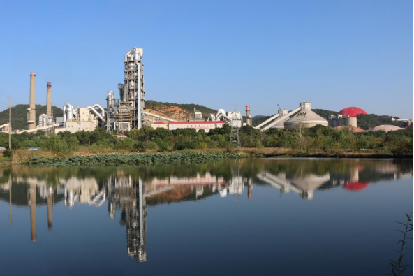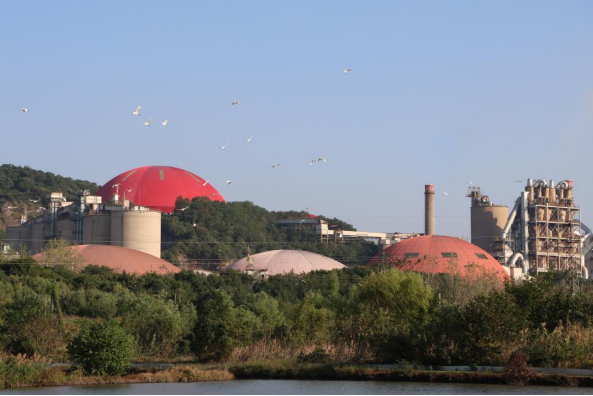 秋高氣爽,白鴿翱翔,紅色廠區(qū)與綠樹相映成趣
