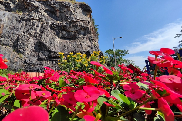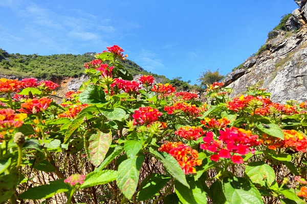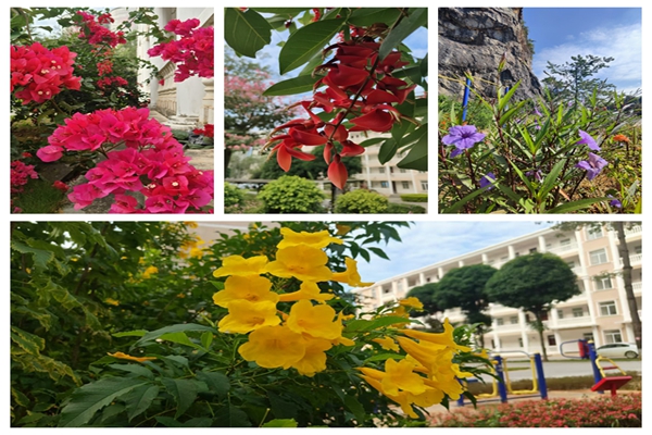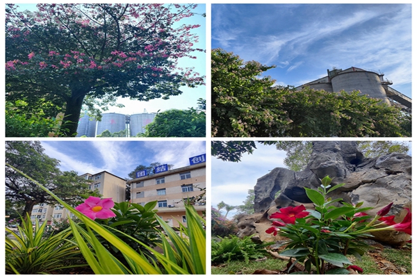 廠區(qū)里,黃的、紅的、粉的、紫的、橙的、白的花兒從一叢一叢的綠色中鉆出來(lái),如一個(gè)一個(gè)精美的調(diào)色盤鑲嵌在隆安海螺的秋色大地上。引得路過(guò)的職工都禁不住誘惑駐足觀賞、留影。