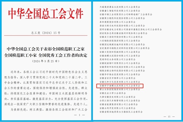 日前,中華全國(guó)總工會(huì)印發(fā)了《中華全國(guó)總工會(huì)關(guān)于表彰全國(guó)模范職工之家 全國(guó)模范職工小家 全國(guó)優(yōu)秀工會(huì)工作者的決定》,懷寧海螺公司工會(huì)獲“全國(guó)模范職工之家”榮譽(yù)稱號(hào),這是繼“全國(guó)職工書屋”“全國(guó)安全文化建設(shè)示范企業(yè)”之后獲得的又一全國(guó)性殊榮。