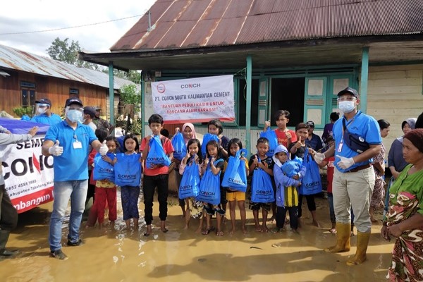 2021年1月28日,南加海螺為當(dāng)?shù)厥芎闉?zāi)影響村民送去慰問品