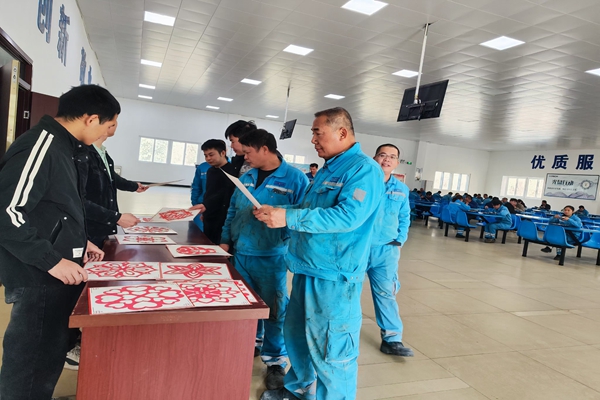 “想不到今年還能領到手工剪裁的窗花,我只有在小時候外婆給我剪過,讓我想起小時候的春節(jié),真是越來越有年味兒了!”一位生產(chǎn)崗位的員工一邊挑選著窗花一邊說道。