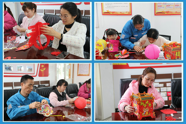 早上10:30,“燈籠DIY”活動在辦公樓二樓會議室正式拉開序幕。員工及家屬們各自挑選自己喜歡的華燈模型著手制作,不一會兒,一個個精美的燈籠從他們的巧手下制作完成??粗约壕闹谱魍瓿傻臒艋\,大家臉上都洋溢著喜悅。