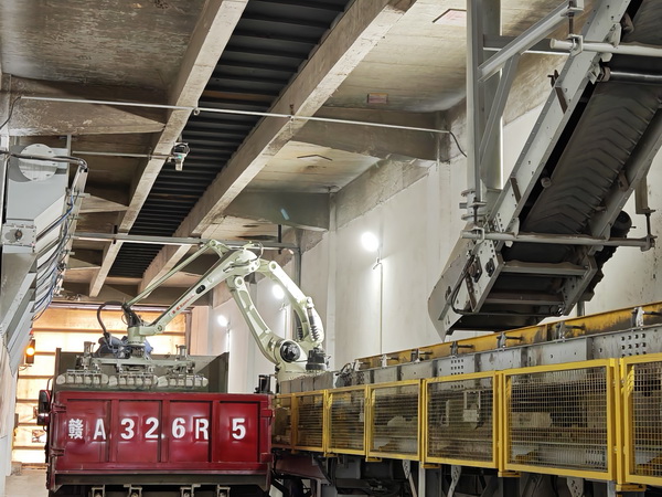 贛江海螺的綠色蝶變,離不開科技的強力支撐。生產(chǎn)車間,智能化、自動化設備隨處可見。智能照明系統(tǒng)根據(jù)光線自動調(diào)節(jié)亮度,節(jié)約用電;節(jié)能型風機、水泵等設備高效運轉(zhuǎn),降低能耗;先進的DCS控制系統(tǒng)實時在線監(jiān)控,確保生產(chǎn)高效、穩(wěn)定運行……“2024年,公司對袋裝裝車道實施智能化改造,安裝袋裝機器人自動裝車系統(tǒng),實現(xiàn)自動包裝、機器人裝車、無人過磅,在降低員工勞動強度的同時,極大提升了裝卸效率,并進一步降低了揚塵?!碑攩柤肮局悄芑ㄔO成效時,包裝工段吳高松舉例說。