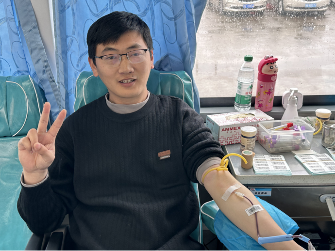 “這是我第二次獻(xiàn)血,說實(shí)話還是有點(diǎn)緊張”。詹章地,財(cái)務(wù)處副處長(zhǎng),自從去年在世界獻(xiàn)血者日捐獻(xiàn)后一直想再次獻(xiàn)血。這次他早就通過公司釘釘報(bào)名。詹章地表示:“獻(xiàn)血后感覺自己多了一份使命,以后會(huì)堅(jiān)持每年參與”。