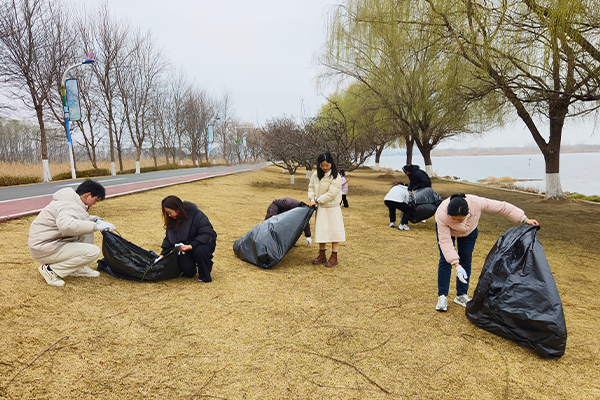 奔跑過后,小伙伴們兩人一組手持黑色垃圾袋沿湖邊緩緩前行,時(shí)不時(shí)彎腰撿拾地上的白色垃圾、枯枝等物?!芭芡瓴窖刂呥吷⒉竭厯炖?,既健康又環(huán)保,還順便增加饑餓感讓大家等會(huì)兒能多吃點(diǎn)燒烤,我們這算不算一舉數(shù)得?。俊薄盎ń隳愕葧?huì)展示一下你的烤技啊,我想吃你烤的羊肉串……”談笑中,環(huán)湖撿垃圾志愿服務(wù)活動(dòng)接近尾聲。