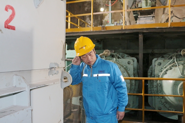 在這之后,孫林通的目光和腳步,先后三次回到這個(gè)位置。他俯身觀察,對(duì)比記錄,確認(rèn)滲水量雖然很小,但卻在持續(xù)地增加。他深知任何的疏忽或僥幸,都可能讓隱患在“再觀察一下”的拖延中升級(jí)。清晨六點(diǎn),當(dāng)滲水現(xiàn)象已轉(zhuǎn)為清晰可見(jiàn)的細(xì)流時(shí),孫林通果斷拿起對(duì)講機(jī),向上級(jí)進(jìn)行了清晰、準(zhǔn)確地匯報(bào):“4#輥壓機(jī)動(dòng)輥有載端滲水加劇,疑似內(nèi)部構(gòu)件異常,請(qǐng)設(shè)備人員立即現(xiàn)場(chǎng)確認(rèn)!”