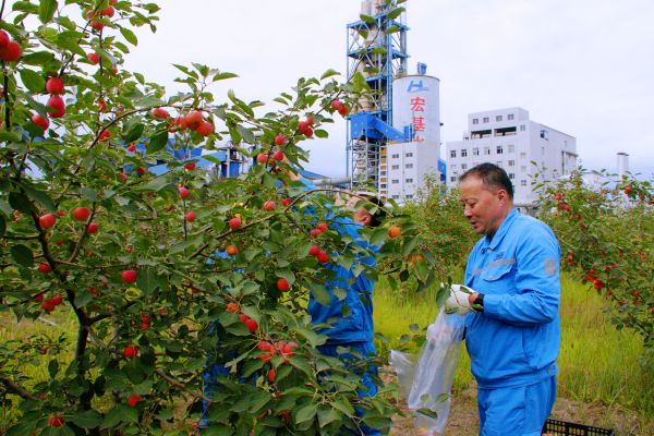 沙果——我國特有的一種水果,每年8-9月成熟。走進(jìn)宏基水泥的辦公區(qū),就能看到一片片的沙果林,紅紅的果實(shí)壓彎樹枝,飄散著濃郁的果香。果實(shí)成熟后,大家紛紛提著袋子來到果園采摘,歡笑聲、加油聲、吶喊聲此起彼伏,處處呈現(xiàn)熱鬧、喜悅的豐收景象。