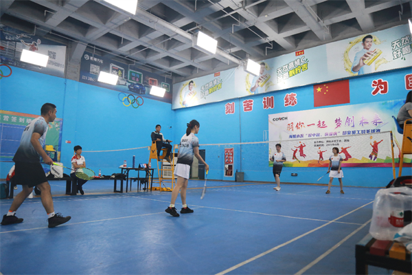 各參賽選手活力四射、身姿矯健、斗志昂揚(yáng),眼里閃爍著拼搏的光芒,滑步、擺臂、揮拍,時而大力扣殺,時而網(wǎng)前截?fù)?,循環(huán)賽場上你來我往精彩角逐。