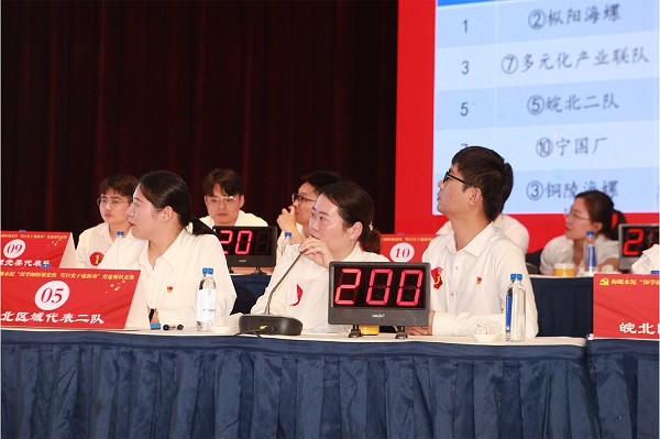 競賽來到第二階段同題共答環(huán)節(jié),6支晉級的代表隊全部清零,迎來了新一輪的“大考”。經(jīng)過13道題目的比拼,寧國廠代表隊率先取得晉級下一輪的“入場券”;樅陽海螺代表隊和省內(nèi)多元化產(chǎn)業(yè)聯(lián)隊因得分相同,在經(jīng)過一輪的加賽后,省內(nèi)多元化產(chǎn)業(yè)聯(lián)隊搶得先機,成功晉級。