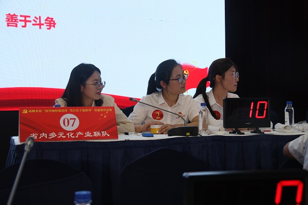 這次知識競賽以習(xí)近平新時代中國特色社會主義思想、黨的二十大報告等為主要內(nèi)容。試題將黨的歷史、時事政治、熱點新聞、企業(yè)經(jīng)營發(fā)展成果、形勢政策教育等嵌入其中,以視頻題、音頻題、識圖排序題、推理題等呈現(xiàn),特別是通過場上場下聯(lián)動,讓比賽既是參賽選手的同臺競技,又是給觀賽人員開展了一場沉浸式的黨課教育。