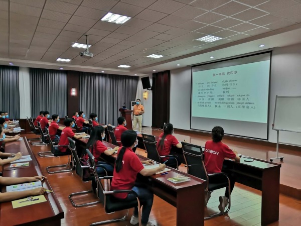 Vorn Pisey(中文名:王書賢),辦公室行政主管,一個大大咧咧的馬德望本地女孩,是公司“資深”的老員工。當(dāng)被問起對公司印象怎么樣時,王書賢已經(jīng)能用流利的中文“滔滔不絕”了。“以前我都沒想過會在海螺工作這么久,公司的環(huán)境很優(yōu)美,食宿條件太好了,還有各種各樣的娛樂設(shè)施,和同事們相處也很開心。公司還給我們培訓(xùn)中文,教我們很多生產(chǎn)和管理的知識,現(xiàn)在我們的收入也很高……我和我老公會一直干下去的?!?br> 在馬德望海螺,像王書賢這樣的“夫妻檔”還有幾十對?!肮局苯犹峁┑木蜆I(yè)崗位就有400多個,同時通過帶動相關(guān)上下游產(chǎn)業(yè)發(fā)展,還間接創(chuàng)造就業(yè)機(jī)會2000多個”,馬德望海螺辦公室負(fù)責(zé)人說,“我們通過建立完善的職業(yè)發(fā)展體系、構(gòu)建包容的企業(yè)文化、打造富有競爭力的薪酬體系,以及不斷完善的后勤保障,企業(yè)員工的獲得感、認(rèn)同感很高,用柬埔寨當(dāng)?shù)氐脑捳f,鳳凰花開蝶自來嘛”。