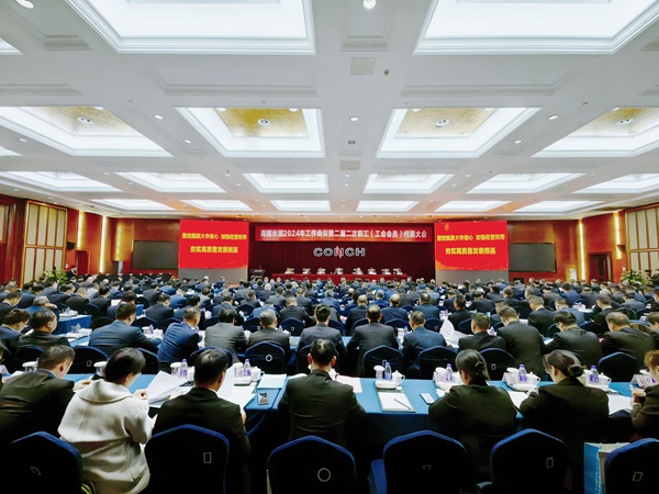 1月30日下午,海螺水泥在總部大廈三樓海螺廳召開了2024年工作會議暨二屆二次職工(工會會員)代表大會??偨Y(jié)2023年工作,部署2024年經(jīng)營目標(biāo)任務(wù)。公司班子、各區(qū)域、子公司主要負(fù)責(zé)人、部室負(fù)責(zé)人以及職工代表共290余人在蕪湖主會場參加了會議,各子公司其他班子成員及二級部門主要負(fù)責(zé)人以視頻連線方式參會。會議由公司副總經(jīng)理吳鐵軍主持。