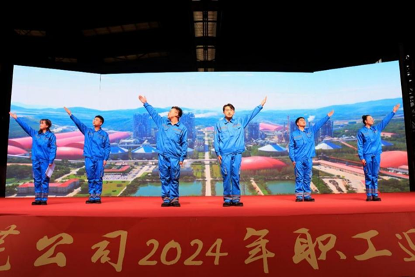 白馬山水泥廠合唱伴舞《吹響海螺號(hào),踔厲奮發(fā)永向前》,將全場氛圍推向高潮。