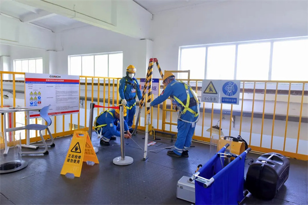 安全競(jìng)技項(xiàng)目比賽中,選手們?nèi)褙炞?,把?yán)謹(jǐn)和細(xì)致貫穿到清倉(cāng)清堵作業(yè)的各個(gè)流程。
