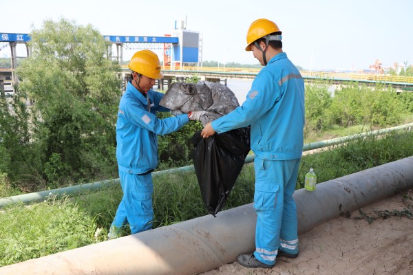 池州海螺開(kāi)展同飲長(zhǎng)江水,共護(hù)母親河青年志愿者活動(dòng),志愿者們來(lái)到長(zhǎng)江沿岸,清理江堤沿途的垃圾。