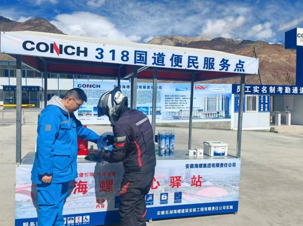 海螺建安依托承建的白瑪鎮(zhèn)珠巴村鄉(xiāng)村振興物資中轉(zhuǎn)站項(xiàng)目部,在318國(guó)道西藏八宿段建設(shè)了海螺愛(ài)心驛站,免費(fèi)向游客提供休憩、飲用水、吸氧、醫(yī)療急救用品、手機(jī)充電、如廁等暖心服務(wù)。