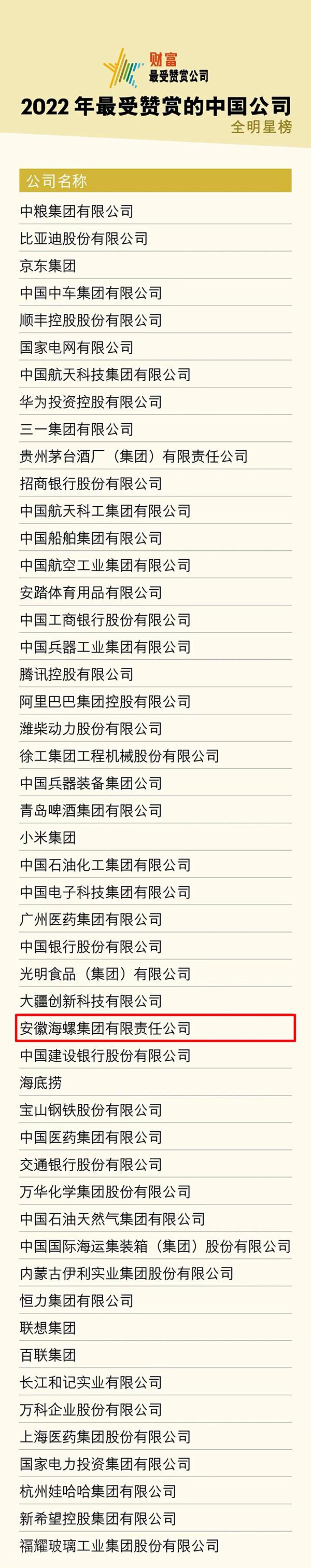 近日,《財富》(中文版)發(fā)布“最受贊賞的中國公司”榜單,海螺集團名列其中。