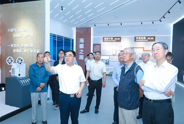 在海螺集團(tuán)展廳,一件件展品、一幅幅圖片、一組組數(shù)據(jù),生動勾勒出海螺集團(tuán)從小到大、由弱變強(qiáng)的奮進(jìn)畫卷。代表團(tuán)一行不時駐足詢問,深入了解海螺集團(tuán)在水泥制造、新能源、新材料、環(huán)保、數(shù)字經(jīng)濟(jì)、現(xiàn)代服務(wù)貿(mào)易等領(lǐng)域的多元化布局以及取得的豐碩成果。