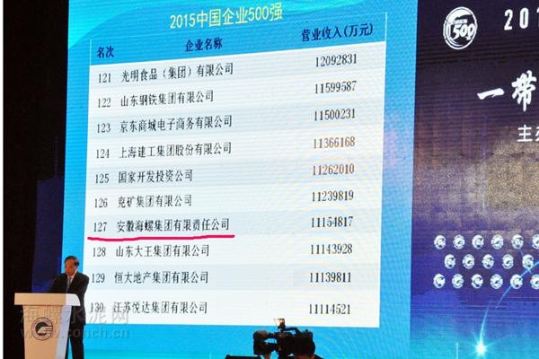 海螺集團(tuán)連續(xù)11年入圍中國(guó)企業(yè)500強(qiáng)