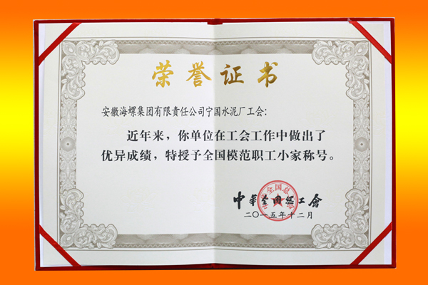 近日,捷報傳來,寧國水泥廠工會被中華全國總工會授予“全國模范職工小家”稱號,成為海螺集團唯一獲此殊榮的工會組織。