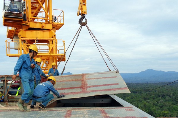 2013年12月18日,南加海螺一期3200t/d熟料線預(yù)熱器順利封頂