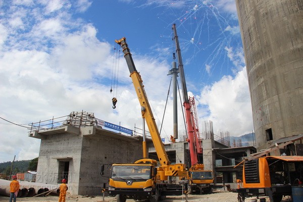2015年4月17日,緬甸海螺預(yù)熱器第一根鋼柱成功吊裝