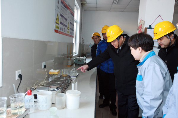 在質(zhì)量分析班組,高書記與宋忠杰、李莉等節(jié)日期間堅守崗位員工交談,了解企業(yè)質(zhì)量控制情況。