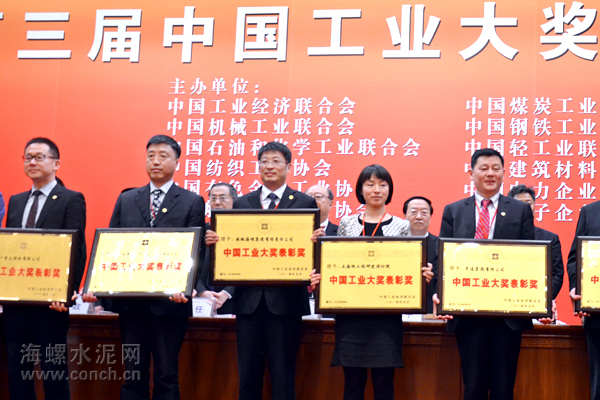2014年5月17日,海螺集團(tuán)總經(jīng)理任勇從主辦單位接過了中國(guó)工業(yè)最高獎(jiǎng)項(xiàng)——工業(yè)大獎(jiǎng)表彰獎(jiǎng)的獎(jiǎng)牌,這是繼2011年集團(tuán)余熱發(fā)電項(xiàng)目獲獎(jiǎng)后,第一次以集團(tuán)名義獲此殊榮,充分顯示了集團(tuán)的技術(shù)實(shí)力和輝煌成就。