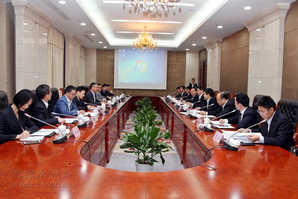 2016年3月22日,海螺集團(tuán)公司黨委書(shū)記、董事長(zhǎng)高登榜在集團(tuán)總部會(huì)見(jiàn)了華潤(rùn)集團(tuán)總經(jīng)理助理、華潤(rùn)水泥董事局主席周龍山,雙方就深化合作事宜進(jìn)行了交談。