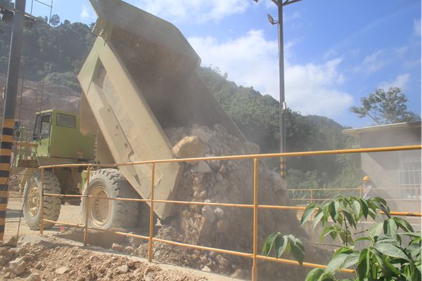 第一車石灰石卸入重板喂坑中