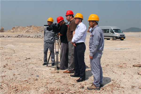 記者一行深入生產(chǎn)現(xiàn)場,實(shí)地拍攝了公司廠區(qū)、員工工作狀態(tài)及職業(yè)健康防護(hù)情況,并到礦山120開采平臺、生產(chǎn)車間、水泥包裝棧臺等進(jìn)行了拍攝。