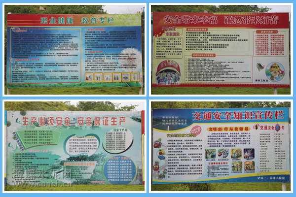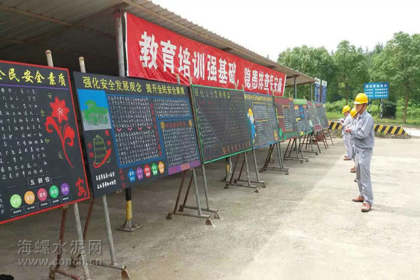 湖南區(qū)域祁陽海螺、臨湘海螺等公司為營造濃厚的“安全月”安全生產(chǎn)氛圍,各公司制作安全警示牌、安全知識宣傳欄等,通過多種載體,多形式地宣傳“安全月”活動(dòng)及主題,促使廣大員工自覺遵守安全生產(chǎn)相關(guān)規(guī)章制度,嚴(yán)格執(zhí)行崗位安全操作規(guī)程,強(qiáng)化安全生產(chǎn)意識?! ?nbsp;