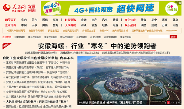人民網(wǎng)安徽頻道頭版頭條發(fā)布《安徽海螺:行業(yè)“寒冬”中的逆勢(shì)領(lǐng)跑者 》報(bào)道