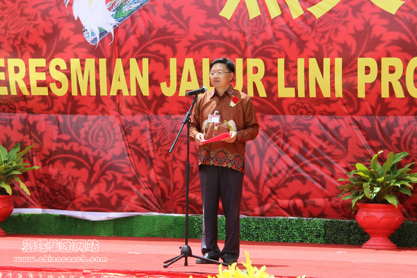 西巴布亞省副省長(zhǎng)Irene manibuy 致辭,她代省長(zhǎng)向項(xiàng)目一期工程順利點(diǎn)火投產(chǎn)表示熱烈的祝賀。她表示,近年來(lái),中國(guó)政府提出的“一帶一路”發(fā)展戰(zhàn)略,影響并帶動(dòng)了周邊國(guó)家經(jīng)濟(jì)發(fā)展,西巴項(xiàng)目順利點(diǎn)火投產(chǎn),正是“一帶一路”戰(zhàn)略在印尼的成功實(shí)踐,也是兩國(guó)政府友好合作的典范。