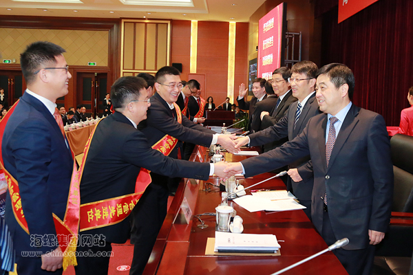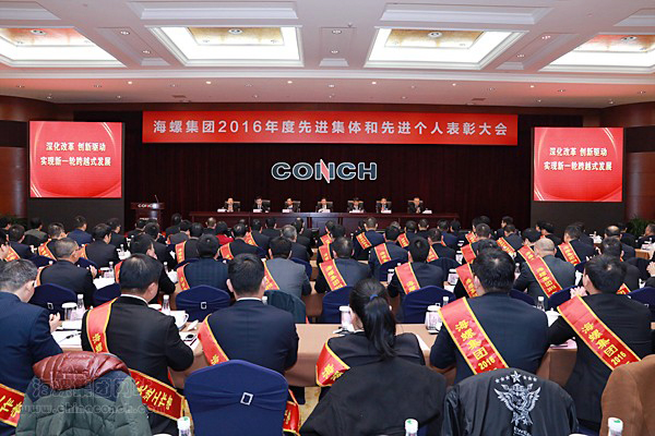 1月18日上午,蕪湖海螺國(guó)際大酒店內(nèi)溫暖如春,人潮涌動(dòng),海螺集團(tuán)公司2016年度先進(jìn)表彰大會(huì)在這里隆重召開。受到表彰的先進(jìn)單位和個(gè)人代表,各專業(yè)部室、集團(tuán)直屬子公司、海螺水泥股份公司、海螺型材股份公司等各產(chǎn)業(yè)板塊的中高層管理人員共300余人參加會(huì)議,集團(tuán)海內(nèi)外130余家所屬企業(yè)管理人員以視頻連線方式參加大會(huì)。