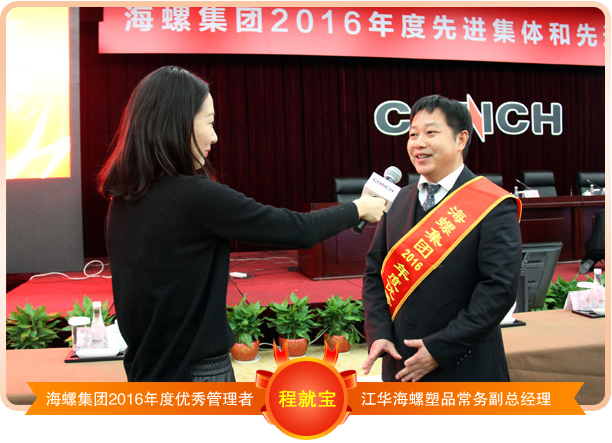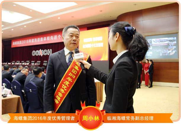 江華海螺塑品程就寶:作為集團(tuán)他業(yè)公司的一名管理人員,能被給予這么高的榮譽(yù),心情格外激動(dòng)。2017年,我首先要從自身做起,不僅要帶頭學(xué),更要學(xué)好學(xué)精,成為廉潔守法表率和實(shí)干表率。我們將認(rèn)真領(lǐng)會(huì)集團(tuán)年會(huì)精神,圍繞年度生產(chǎn)經(jīng)營(yíng)計(jì)劃,認(rèn)真分析外部形勢(shì),提前謀劃好全年工作,重點(diǎn)抓好黨建、銷(xiāo)售及市場(chǎng)拓展,為水泥主業(yè)提供更好服務(wù),為公司發(fā)展提供堅(jiān)強(qiáng)的政治保障,為集團(tuán)“一強(qiáng)三冠”目標(biāo)實(shí)現(xiàn)盡綿薄之力!