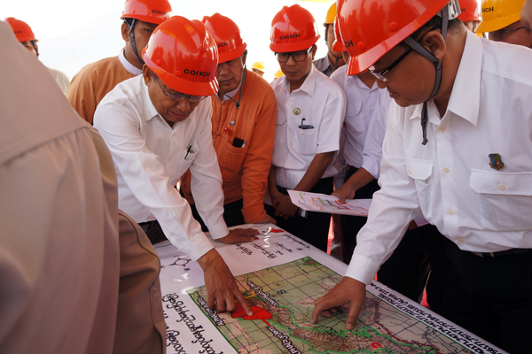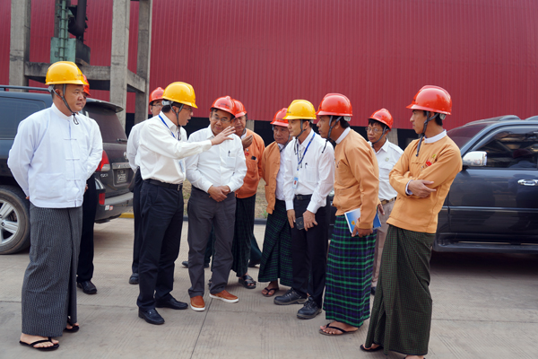 3月4日上午,U Ohn Win部長(zhǎng)一行參觀考察了緬甸海螺自備電站和5000t/d生產(chǎn)線,并在礦山上對(duì)公司石灰石礦、砂巖礦、鐵礦石礦等采礦權(quán)證辦理中需協(xié)調(diào)解決事項(xiàng)進(jìn)行了現(xiàn)場(chǎng)布置。