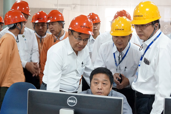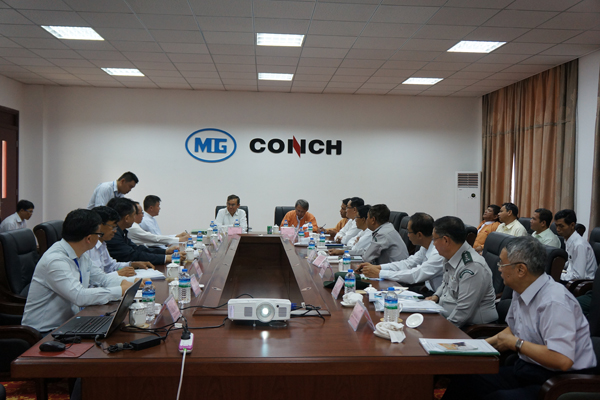 2017年3月4日,緬甸自然資源與環(huán)境保護(hù)部部長(zhǎng)U Ohn Win率隊(duì)到緬甸海螺考察指導(dǎo)工作。合作方MYINT公司主席唐永富、緬甸區(qū)域班子等人員熱情接待了U Ohn Win部長(zhǎng)一行。